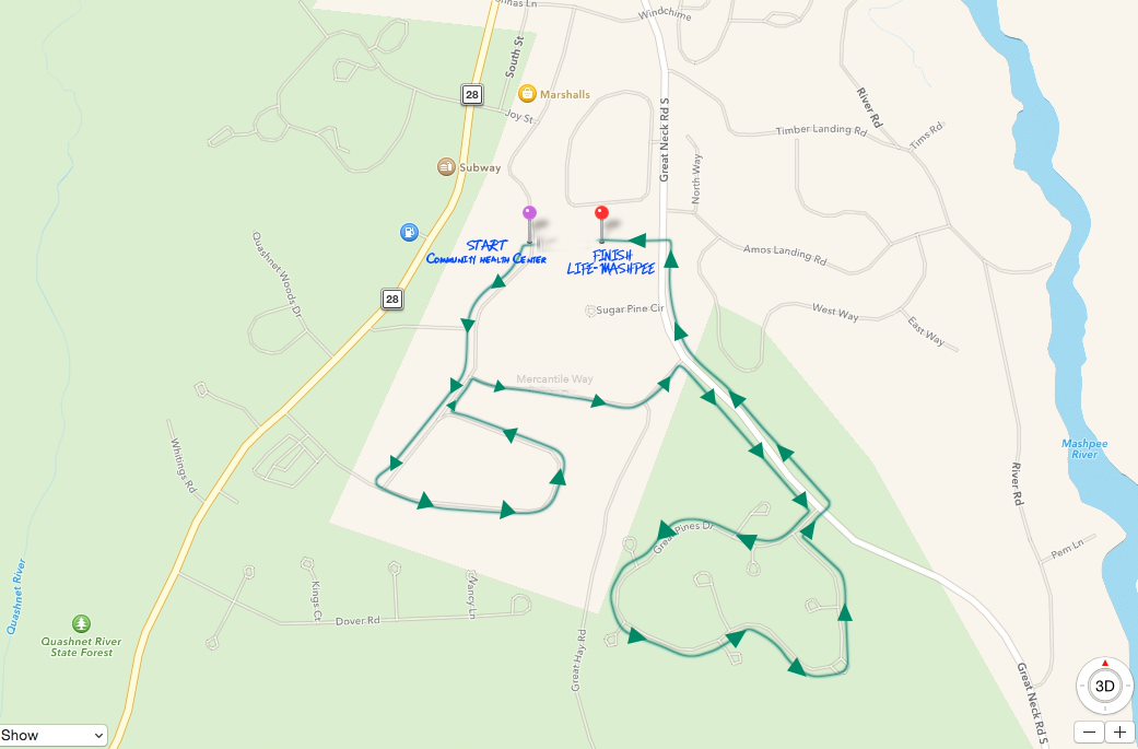 • Finish: LIFE campus 175 Great Neck Road South, Mashpee
